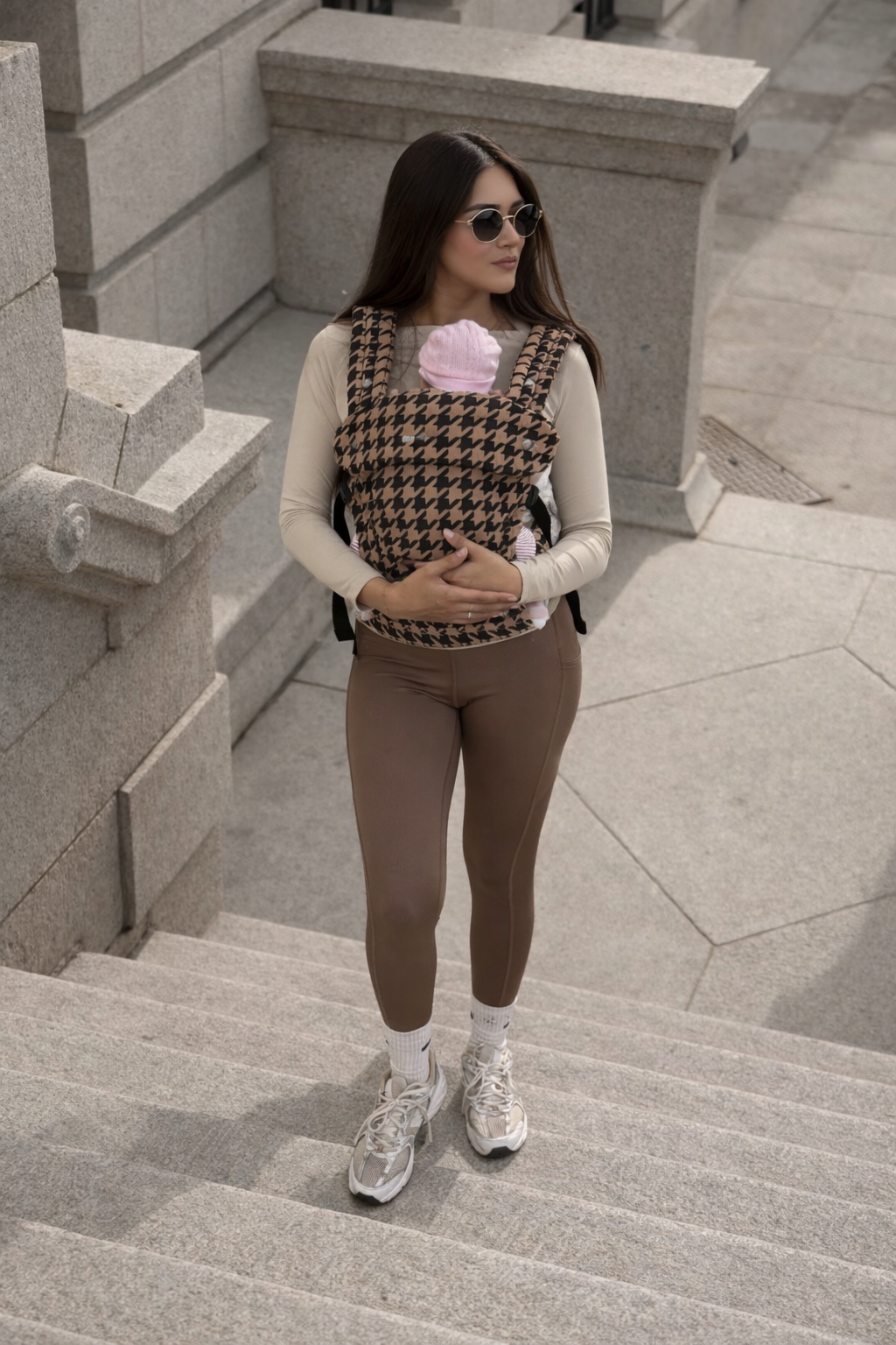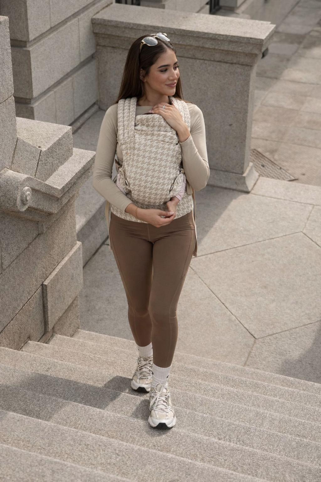Designed in a chic houndstooth cotton-linen blend, this all-in-one carrier offers three ergonomic positions to grow with your baby — from newborn to toddler. Lightweight, secure, and stylish, it keeps your little one close while giving you the freedom to move with ease.
