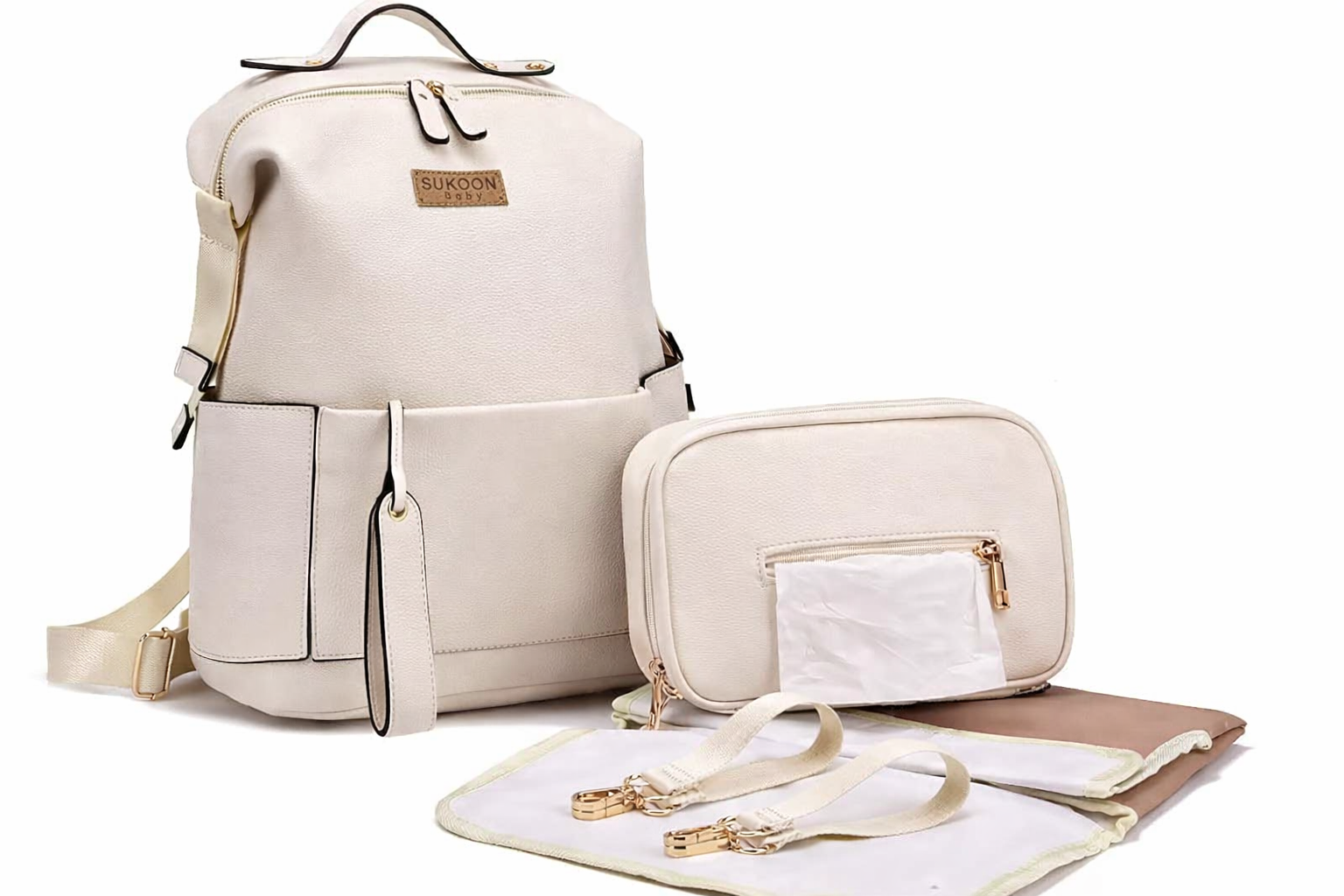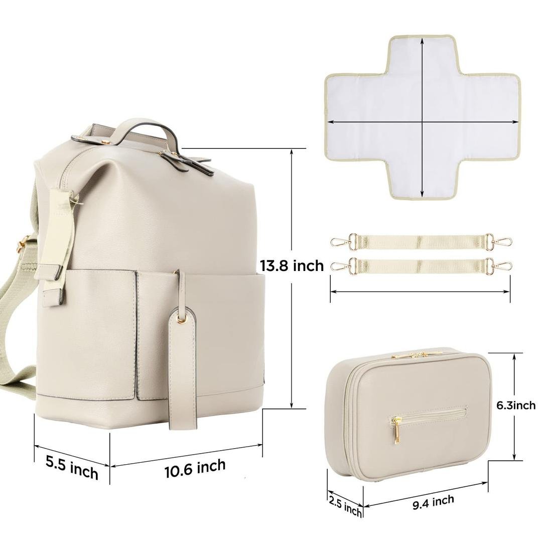The bag includes a matching diaper changing mat for comfortable changes anywhere, along with a baby cosmetic & wet wipes pouch to keep essentials neatly organised and always within reach.